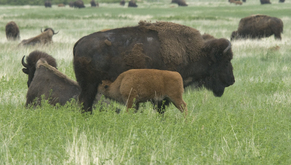 The mammal family Bovidae includes a wide variety of hoofed mammals, including antelopes, cattle, sheep, goats, and others . This family is found throughout much of the world, except for Australia and many islands, but most species are found in Africa (antelope, gazelles, buffalo, wildebeest, etc.). There are about 137 species in the world. Some of the most important animals in human history and agriculture are members of this family, including cows, sheep, and goats. In North America there are a few native members of the family Bovidae, including American bison, mountain goats, muskoxen, bighorn sheep, and Dall’s sheep. Of these, only American bison were once found in Michigan. However, since humans have introduced cows, sheep, and goats to the Americas, these animals have profoundly influenced North American ecosystems and are found throughout the continent. Members of the family Bovidae eat grass and other vegetation and use bacteria in their guts to ferment the plant matter. Males of all species have horns and often females have horns as well. Horns are different from antlers, which are found in the deer family. Horns have a bony core covered in keratin (what your fingernails are made of) and they are never shed.