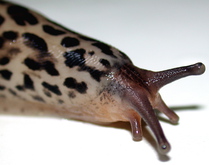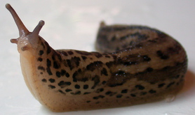 Spotted garden slugs can attain at least 6 inches in length. They vary in color from yellowish-gray to brown with black spots on the mantle near the head and black stripes extending along the rest of the body. The tail area is wrinkled. There is a pneumostome or breathing pore on the back part of the mantle that this slug uses to breathe.
