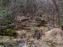This is a small boggy area in a lowland, coniferous forest in northern Michigan.